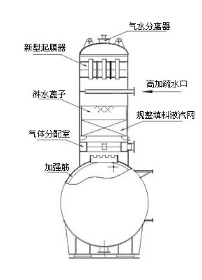 旋膜式除氧器的結構型式主要由筒體外殼、汽水分離器、新型旋射起膜器、淋水篦子、規整波紋液汽網、水箱組成。